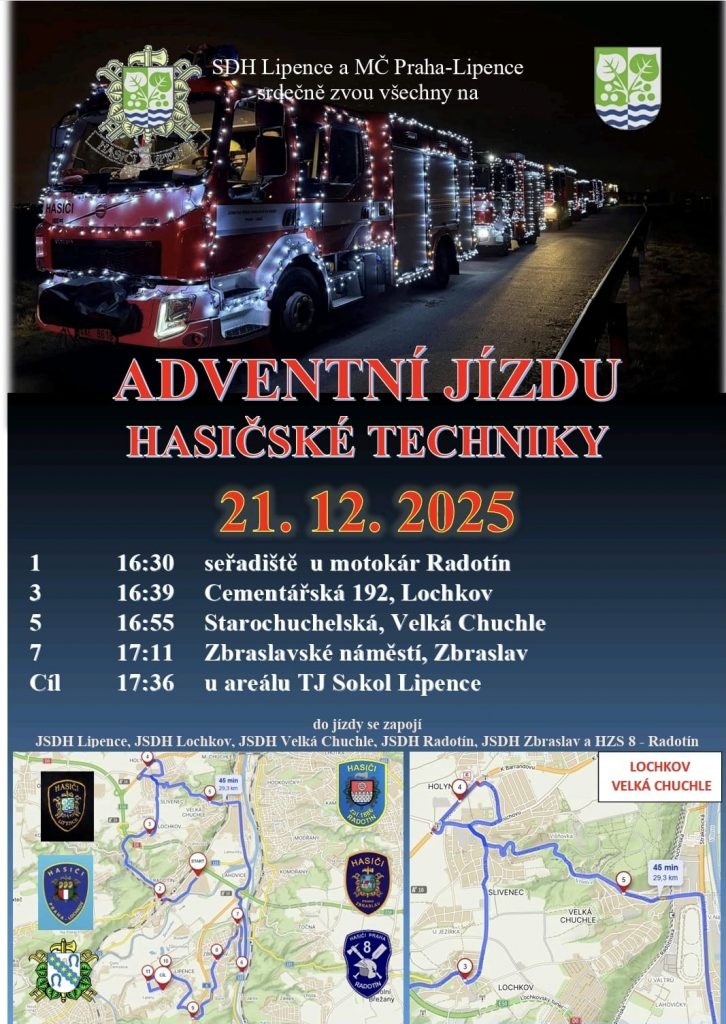 Posted on 17. 12. 2025 by Pavel KvasnovskýAdventní jízda Zveme své příznivce na ADVENTNÍ JÍZDU hasičské techniky v neděli 21. prosince️